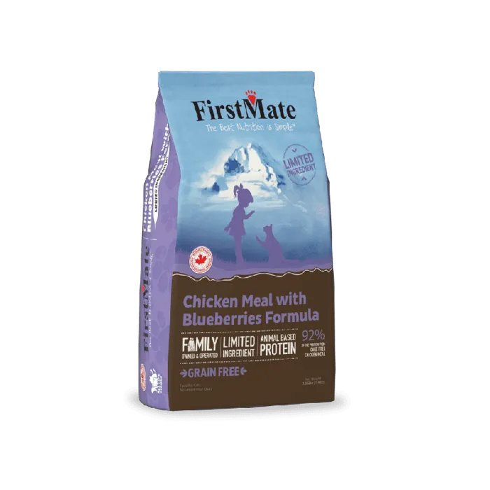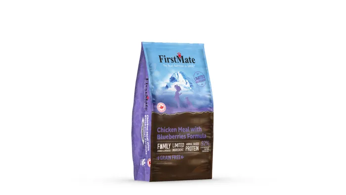 FirstMate’s Chicken with Blueberries is a grain-free cat food featuring a single source meat protein. This limited-ingredient diet allows for easy digestion, with 92% of protein from free-run chicken and 8% of protein from potatoes. Blueberries promote a healthy immune system, urinary tract, increased eyesight and memory function, and provide a source of dietary fiber. FirstMate’s grain-free and gluten-free diets are a wonderful choice for kittens and cats at all stages of life, and have a reduced chance of allergic reaction.