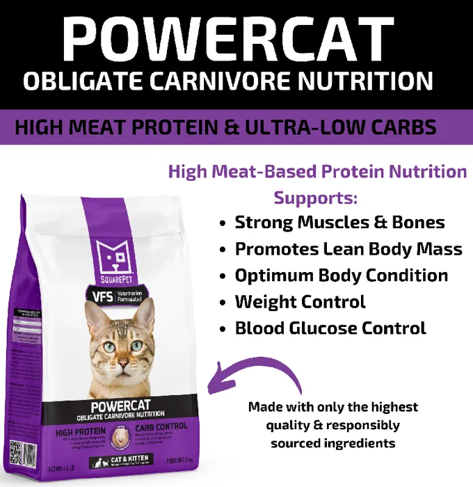 VFS POWERCAT is obligate carnivore nutrition specifically formulated to match the needs of the unique feline metabolism. VFS POWERCAT is a high meat-based protein diet paired with ultra-low carbohydrates which provides the carnivorous amino acids required by hypercarnivores to help promote strong muscles and a lean and fit body condition. VFS POWERCAT is the perfect diet for your hypercarnivorous feline!