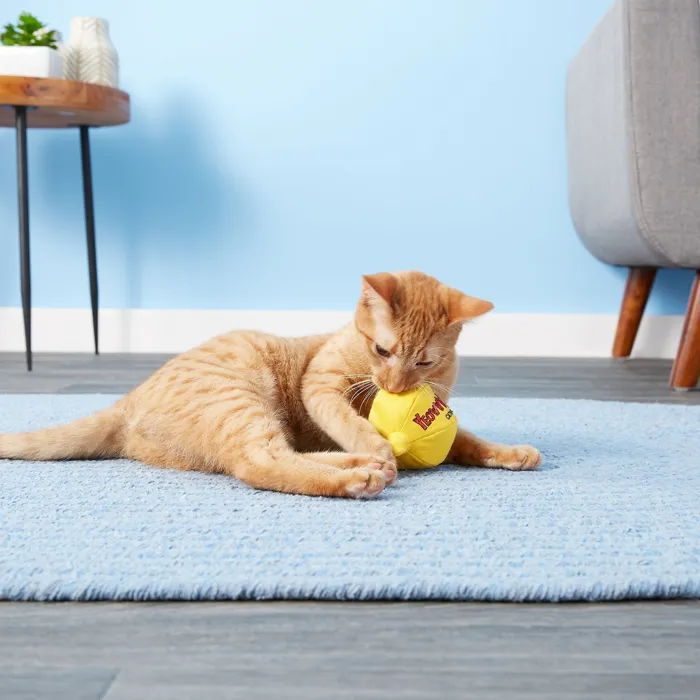 The Yeowww! Catnip Lemon Cat Toy is shaped like a lemon but guaranteed not to cause sour face. This fun and quirky Yeowww! toy is sewn by hand and individually stuffed with 100% organically grown catnip that comes from trusted farmers. The outer fabric is a durable cotton twill that’s strong enough to hold up to all the biting and bunny kicking a cat can dish out. It’s made with quality in mind and contains no cotton fillers, dangerous plastic pieces or any of the cheaper “toy grade” materials.