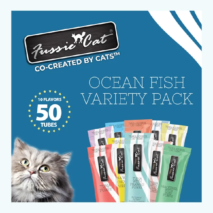 Fussiecat Puree Ocean Fish Variety Pack 10 Flavors 50/tub
